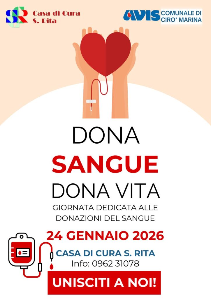 La Casa di Cura Privata Santa Rita è lieta di ospitare la Giornata di Raccolta del Sangue organizzata da AVIS Comunale di Cirò Marina.